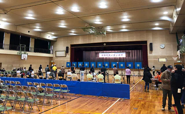 体育館で、吹き矢大会の風景の撮影を行いました。