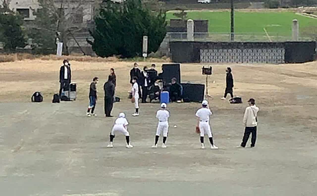 グラウンドを利用した撮影では、野球部の活動シーンを撮影。
