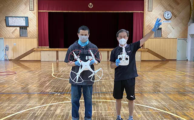 体育館では、機体のGPSを切った不安定な状態でのフライト訓練も行いました。