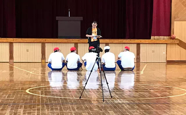 体操服に着替え、童心に返り本気でゲームを楽しんでいました。体育館では、道徳の授業中に突然ゲームスタート!