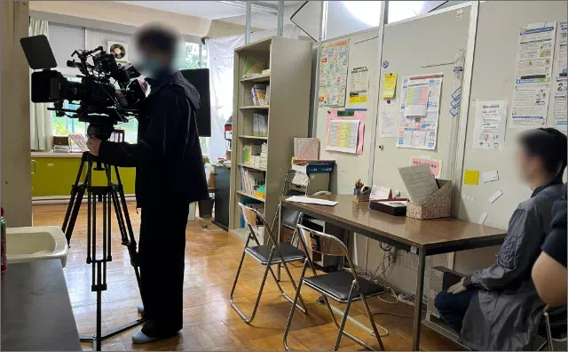 また、3Fの教室では中高生サイズの椅子と机を利用して、卒業式の日のシーンや教員試験の面接のシーンの撮影をされていました。