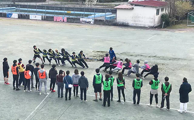 17日は体育館とグラウンドでレクリエーション。玉入れや大縄跳び、ドッジボールにチーム対抗リレーなど白熱した戦いでとても盛り上がりました。
